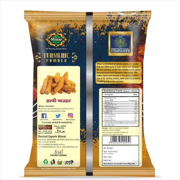 Minar Turmeric Powder is a premium quality turmeric powder renowned for its warm flavor and distinct aroma. Processed from whole turmeric, Minar Turmeric Powder offers unparalleled authenticity and freshness.